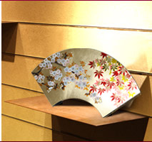 紅葉と桜を色とりどりの蒔絵で描いた 扇面額 春秋