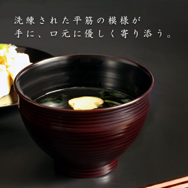 汁物やご飯を入れた器を持つとき、断熱性の高い漆器のお椀は器の側面が熱くなりにくく、手のひらでしっかりと持つことが出来ます。また、木製のお椀は「保温性」を持っておりますので中に入れたお料理の温度を長持ちさせてくれます。