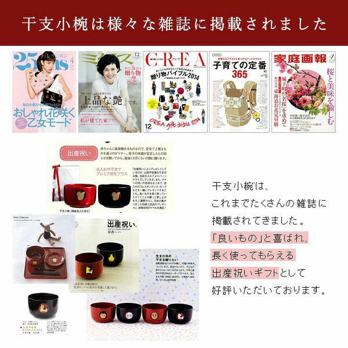 『婦人画報』や『家庭画報』、『和楽』をはじめ500誌以上の雑誌に掲載して頂いております。