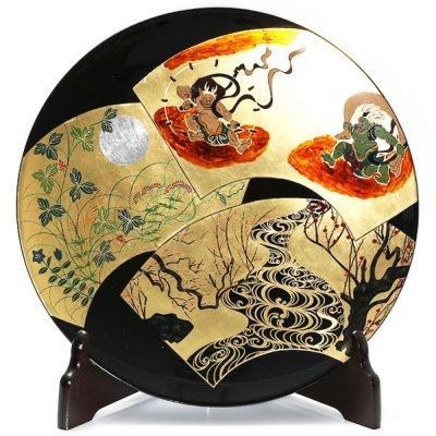 琳派×日本の四季 桜と紅葉を末広がりの金箔扇に描いた