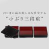 2人分のお重箱は、一段重や二段重が多い中 こちらは「三段重」でお作りしております。 それは、毎日の暮らしに馴染む器として、 アフタヌーンティースタンドのように 少しずつ、色々な盛り付けを楽しんでほしいから。 お重箱を開ける楽しみも広がります。 また、一般的なお重箱より二回りほど小さいので 二日目のおせちの詰め直しにも重宝するサイズ。 お取り寄せおせち派の方も、ひとつ持っておくと おせちを最後まで美しく戴けるので、おすすめです。